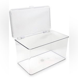 Large Stackable Organizer Bin w/ Hinged Lid, Clear Storage Box