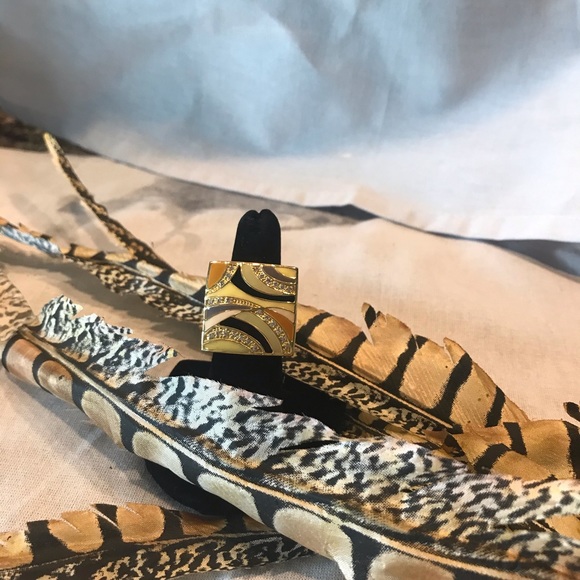 Large Square Enamel Ring, Multicolor