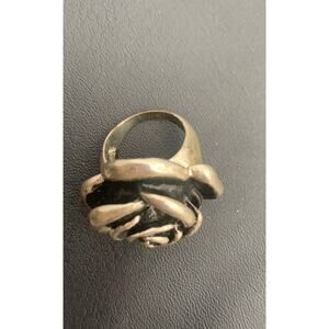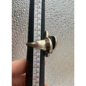 This large statement ring is a whimsical piece of jewelry featuring a rose blossom design in a silvertone finish. With a ring size of 7, it is perfect for those who enjoy bold and eye-catching accessories. The whimsygoth theme adds a touch of fantasy and creativity to the piece, making it ideal for those with a love for whimsical and gothic-inspired styles. The intricate floral details make this ring a unique and beautiful addition to any jewelry collection.