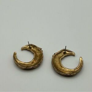 Large Statement Runway Gold Tone Hawk Head Stud Pierced Earrings Rhinestones