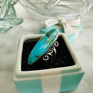 Large Statement Turquoise .925 Sterling Silver Ring Size 7 Fine Jewelry Fashion