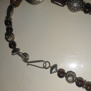 • Accented with silver and brown beads