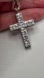 Absolutely gorgeous sterling cross necklace! The cross features 10 Princess cut CZ's , channel set in sterling silver with a large rabbit ear bale. The stones sparkle like mad! The chain is composed of three strands of delicate sterling bead chain, each tiny bead faceted to add even more sparkle! The clasp is a substantial lobster claw and marked Italy FAS. The cross measures 1 7/8 by 1" and the chain is 18" long.