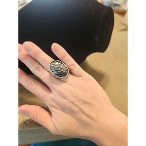 Large Stone Ring 925 Sterling Silver Statement handmade White Black Size 6.5. Shipped with USPS Ground Advantage.