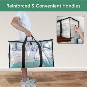 Keep your home organized with this transparent storage bag featuring a sleek black trim. Perfect for storing blankets, clothes, and more.