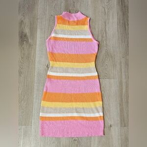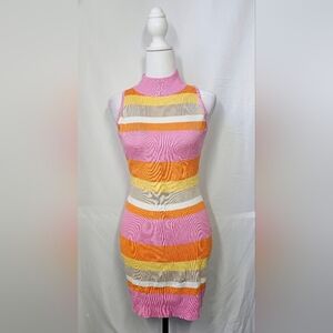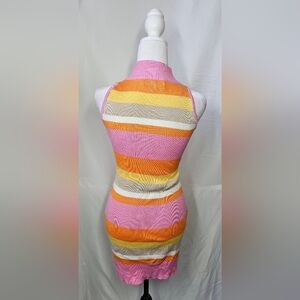 Large Striped Ribbed Knit Sleeveless Bodycon Dress