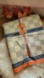 Elegant checkered shawl featuring cream, blue and orange accents. Perfect for layering.