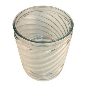 This beautifully designed swirled glass vase is a stunning combination of simplicity and versatility. Standing at 9.5 inches tall and 7.5 inches wide, this clear cylindrical container has a smooth, elegant texture with a spiraling pattern that lends depth and visual interest. Crafted with thick, sturdy glass, it is not only attractive but also highly functional, allowing it to serve as a unique piece for many creative uses around the home or garden.- **Dimensions:** 9.5 inches tall, 7.5 inches wide
