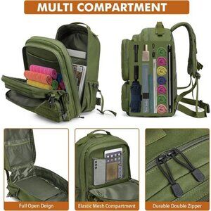 🧿【Large Capacity & Multiple Compartments】This Military backpack has a 45L capacity and 4 zippered compartments, providing ample space for all your gear and supplies. The main compartment opens flat to 180 degrees for easy access. It also has a middle mesh compartment and two front compartments for organized storage.