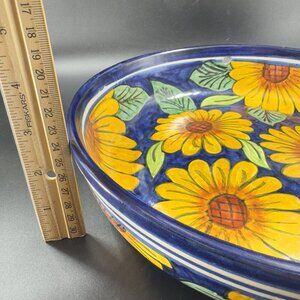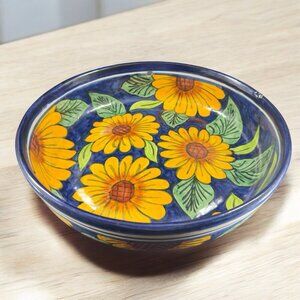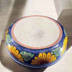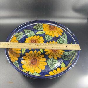 Large Talavera Mexico Pottery Dish Bowl Planter With Sunflower Hanging Dish Bowl