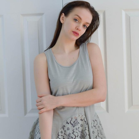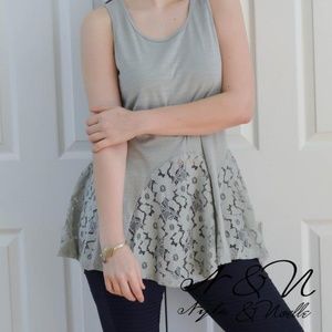 CORALYN - Great piece to wear on it's own or layer under something. This soft sage tank top is in a luxury vintage style fabric and has beautiful lace accents around the hemline.