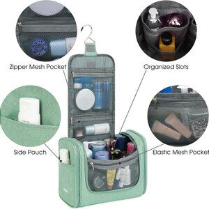 MULTIPLE ORGANIZED DIVIDERS The shower bag is designed with 17 dividers, including brush slots, mesh pocket, and various organized slots. This helps keep your travel accessories, such as cosmetics and travel gear, organized and separated. No more rummaging through the bag to find what you need enjoy a tidy and mess-free bathroom experience!