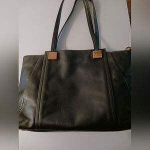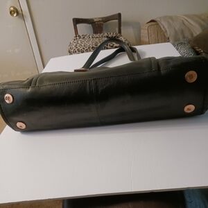This Antonio Melani is large and sleek. It's also genuine ( so was my Loui Vuitton that someone says wasn't). This purse is very clean and I had to carry it one more time. Now I will part with. My loss is your gain.