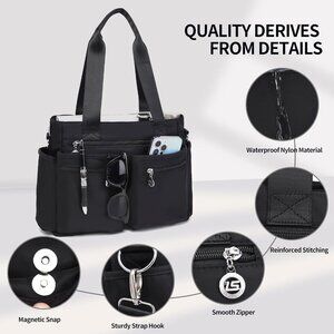 Upgraded Workmanship This large purses for women is crafted with waterproof nylon fabric, lightweight, smooth, silky and easy to clean. The smooth metal zippers are easy to open and close, and the reinforced stitching and sturdy strap hook ensure long-lasting durability.