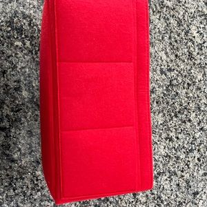 Beautiful red insert with many pockets to organize belongings in a large tote. It measures about 14x8 inches.