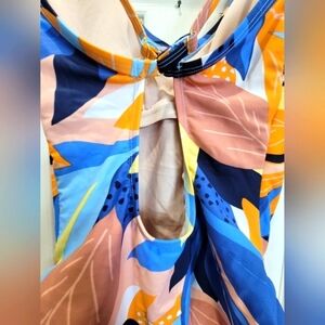 Large Tropical Side Drawstring Razorback Adjustable Straps One Piece Swimsuit