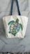 Large Turtle Print Canvas Beach Tote Bag - Cream and Blue