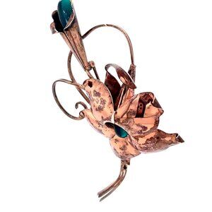 Large VTG Estate TruArt Sterling Silver & Green Stone Flower Rose Tone Brooch! 36