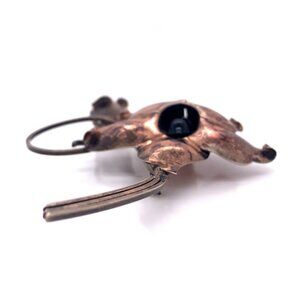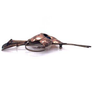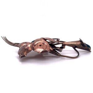 This auction is for one large vintage TruArt brooch. This is sterling and features a rose gold plate. This also features 2 turquoise plastic stones. This measures 4” by 3”. This weighs 17.4 grams. This has natural patina throughout and there is some rose gold plate loss. This has some minor scratches as well. Cute large piece.