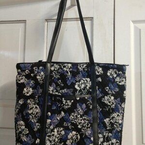 Large Vera Bradley Floral Tote - Blue/Lavender/Black/Gray 18" x 14" x 6-1/2"