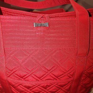 Large Vera Bradley Tall Quilted Red Tote Bag Interior Pockets Colorful Lining