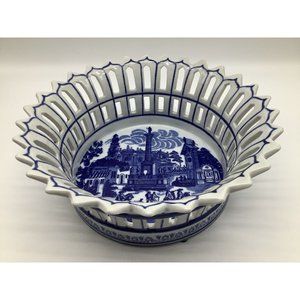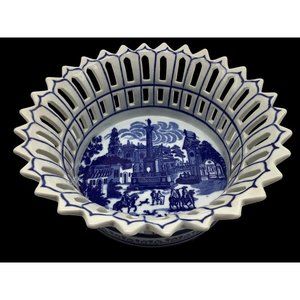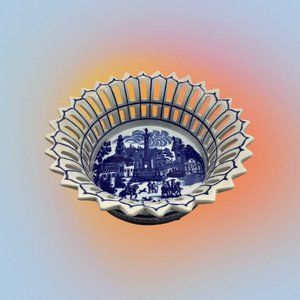 * Has a blue transfer Colonial Scene in the center with additional hand painting
