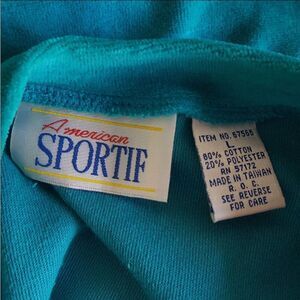 Large Vintage 90's Turquoise Velour Pullover American Sportif Embroidered Crest Banded Bottom #Retro Sweatshirt Casual