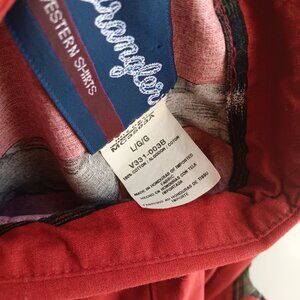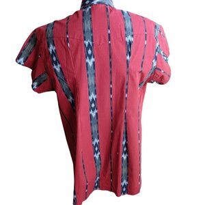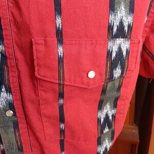 Large Vintage 90's Wrangler Western Shirt Red Stripe Ikat Print Cowboy Honduras