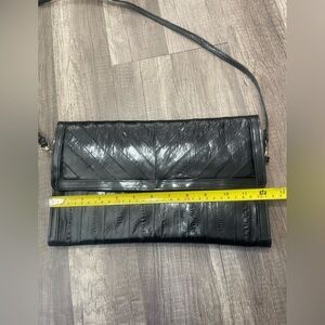 Large Vintage Black 80s EEL skin leather clutch detachable strap Goth flawless