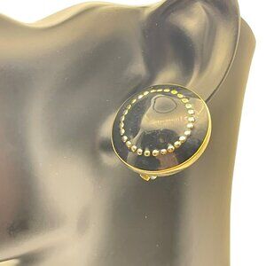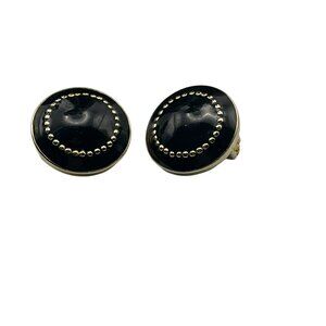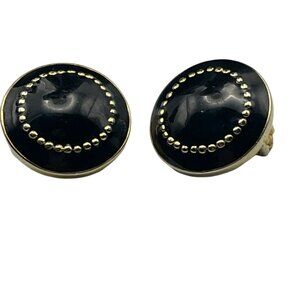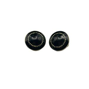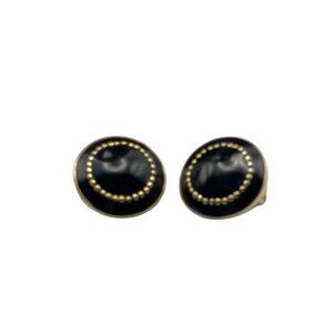 These large vintage clip-on earrings are a stunning addition to any jewelry collection. The black and gold color combination gives them a classic and timeless look that can be worn on any occasion. The huggie style and clip-on closure make them easy and comfortable to wear. Perfect for those who love vintage jewelry, these earrings are a must-have. With their unique design and high-quality materials, they are sure to make a statement. Add them to your collection today and enjoy their beauty for years to come.