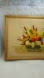 Vintage 1970's handmade large professionally wood framed crewel embroidered fruit and vegetable basket wall hanging picture. Very colorful and well done, signed MMM. Framed by the Frame Factory with hanging wire and rubber buttons on bottom to prevent wall scraping. 23 ¾" x 17 ¾" and frame is ⅞" thick, but picture is thicker in middle because of the back stitching. In great shape, I did not notice anything wrong with the embroidery. Frame has a little scuff spot ( see last pic ), and frame is slightly separated in top right corner ( see video ).