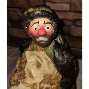 Large Vintage Emmett Kelly Sad Hobo Clown Chalkware Statue Heavy Signed "LEZA"
