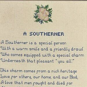 Large Vintage Framed Cross Stitch "The Southerner" Signed 1987 16" x 24"