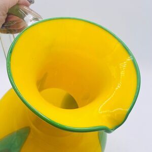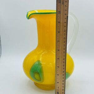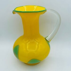 Large Vintage Hand Blown Glass Pitcher Bright Yellow & Green Mid-Century 1960s