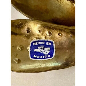 Large Vintage Hecho en Mexico Floral Leaves Spray Brass Copper Tone Brooch