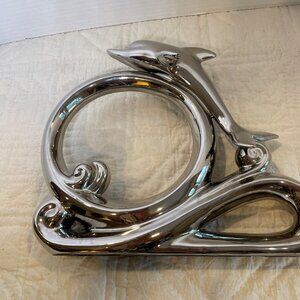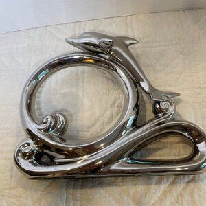Large Vintage Herco Dolphin Figurine On Wave Decorative Sculpture Chrome Modern