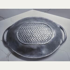 Vintage Lenox serving tray. Crafted from high-quality pewter, this large oval tray features a beautiful fruit weave grapes pattern and convenient handles for easy transport. Perfect for serving appetizers, desserts, or even as a decorative centerpiece, this tray is sure to impress your guests.