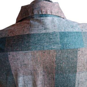 Large Vintage Men's Disco Shirt 1970's Joel Checker Green Polyester Stretch USA