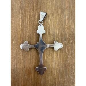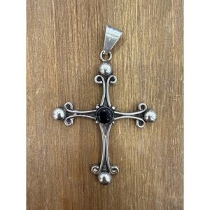 Large Vintage Mexico Sterling Silver Black Onyx Cross Pendant