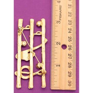 Large Vintage Musical Saxophone Music Notes Gold Tone Brooch - Q9