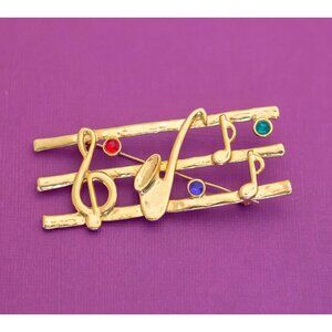 Vintage Mid Century Musical Saxophone Music Notes Brooch