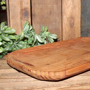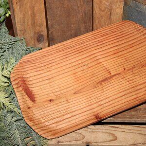VTG 16.25" wide x 9.25" x approx. 1.5" tall wood dough bowl dish tray with a darker, rustic natural finish. Great piece for French Country or farmhouse decor!