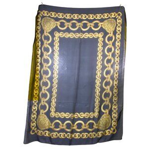 Large Vintage Sheer Gold Chain Print Scarf Navy Blue Y2k Luxury Glam Hip Hop