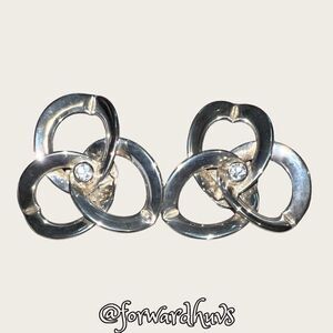 This is a gorgeous pair of large silver tone earrings with a large rhinestone in the center of the earring. The vintage earring is non-pieced / clip on type and the clips tighten down on the lobes well as they should.