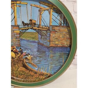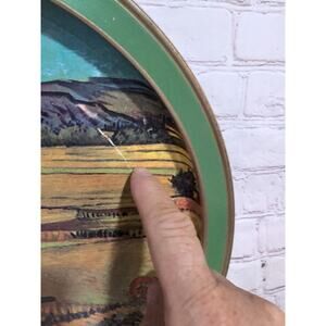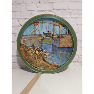 The Large Vintage Vincent Van Gogh Artist Landscape Tin Box from Sunshine Cookie measures 14 inches in diameter and features a colorful multi-color design showcasing a beautiful landscape. This vintage tin box, branded by Sunshine, is a unique collectible piece that would make a great addition to any art or vintage memorabilia collection. Its large size and artistic design make it a standout piece for displaying in a home or office setting.
