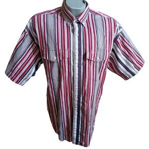 Large Vintage Western Shirt Panhandle Slim Striped Short-Sleeve Red/White/Purple