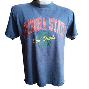 Large Vtg T-shirt Arizona State Sun Devils Vintage Tultex Cotton Blue 1990's Mex
