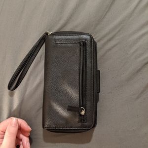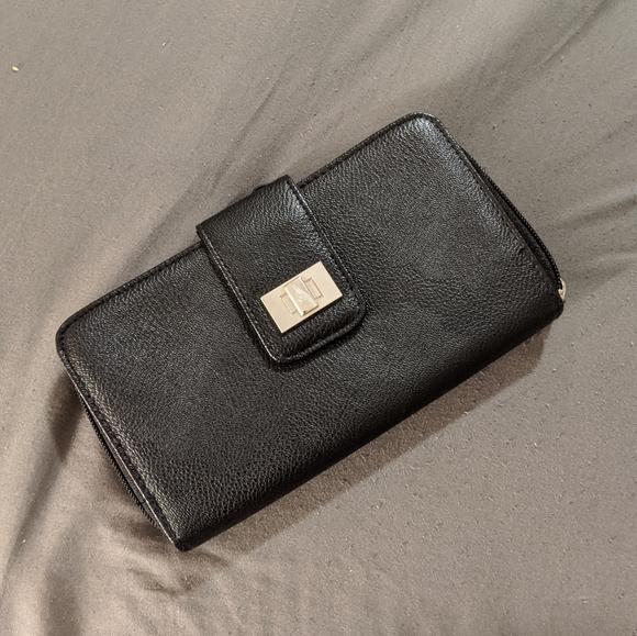 Never used! Black wallet with TONS of storage space for cards, wallets, check book, photos, etc.