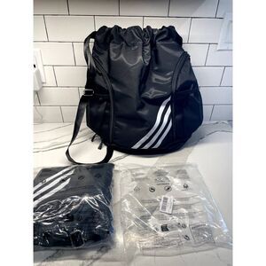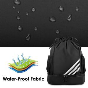 Large Water Resistant Sports Backpack Gym Drawstring Bag Backpack, Black, White