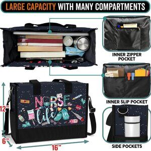 Large Waterproof Tote Bag Women with Pockets Zipper Travel Work Grocery